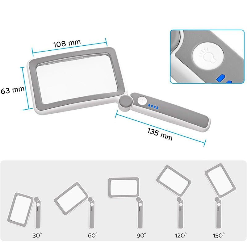 Lupa de leitura dobrável com luz LED - ampliação de 4x