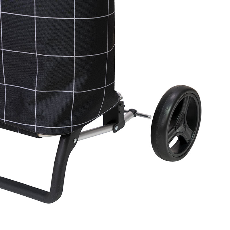 Um carrinho de compras super leve e elegante com duas rodas e bastante espaço para armazenamento. O carrinho de compras Kross possui um compartimento grande que oferece um excelente espaço, fechando completamente de forma fácil com um prático fechamento de cordão. Na parte de trás do carrinho, há um bolso secreto com fecho de correr para guardar objetos menores, como chaves, carteira ou telefone.
