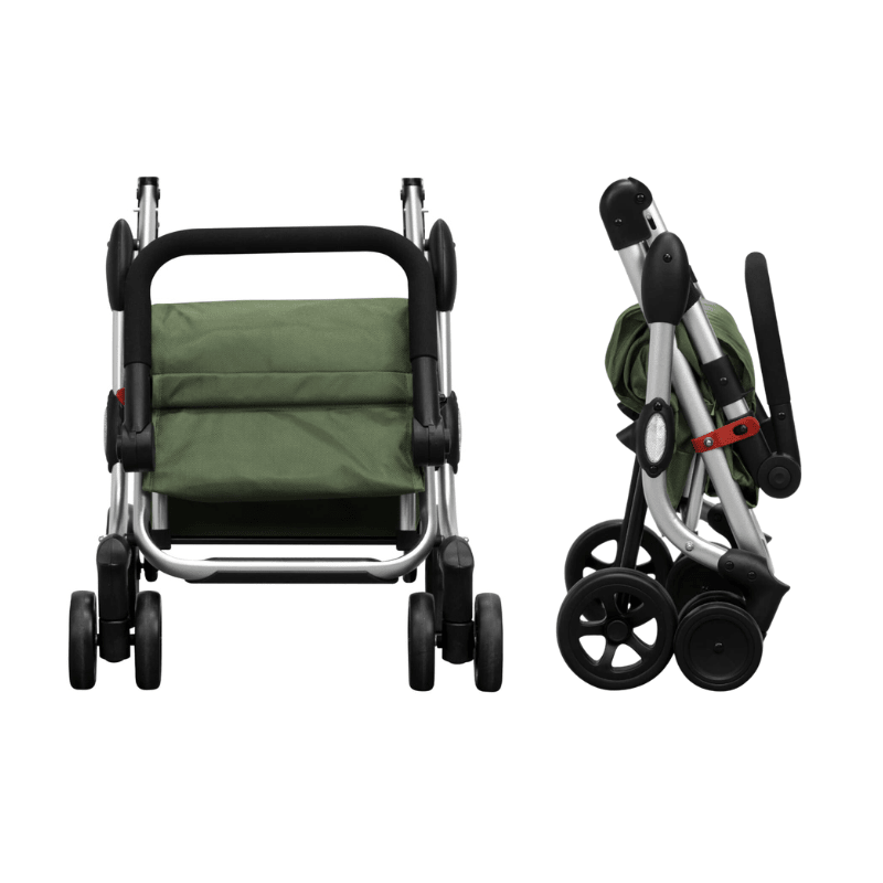 O manípulo do carrinho de compras é acolchoado com espuma EVA e ajustável em várias alturas. O carrinho pode ser facilmente dobrado e trancado com um fecho de segurança automático quando não está em uso - ou quando precisa de ser transportado.