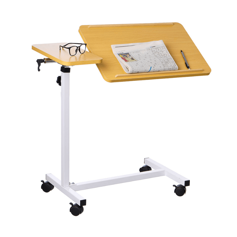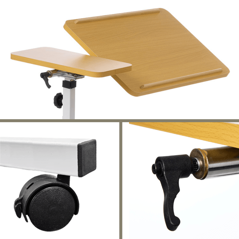 Esta flexível mesa de cabeceira é ideal tanto para a cama como para a cadeira de rodas. Com 4 rodas giratórias (todas com travão), a mesa pode ser facilmente movida e colocada exatamente onde precisar.