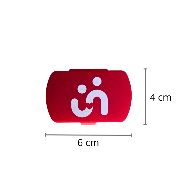 Denne praktiske pilleæske med to adskilte rum i en frisk rød farve er både funktionel og kompakt. Med en størrelse på på 6 x 4 cm passer den nemt i lommen, håndtasken eller toilettasken – ideel til hverdagsbrug eller på rejser.