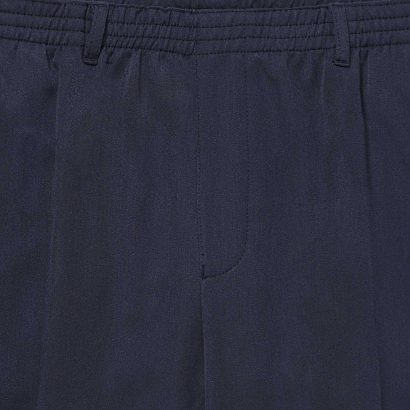 Den bløde elastiklinning hele vejen rundt sikrer en behagelig pasform, der følger kroppens bevægelser uden at stramme. Bukserne har en pressefold foran, som giver et pænt og klassisk udtryk, og de kan nemt bruges både til hverdag og pænere anledninger.