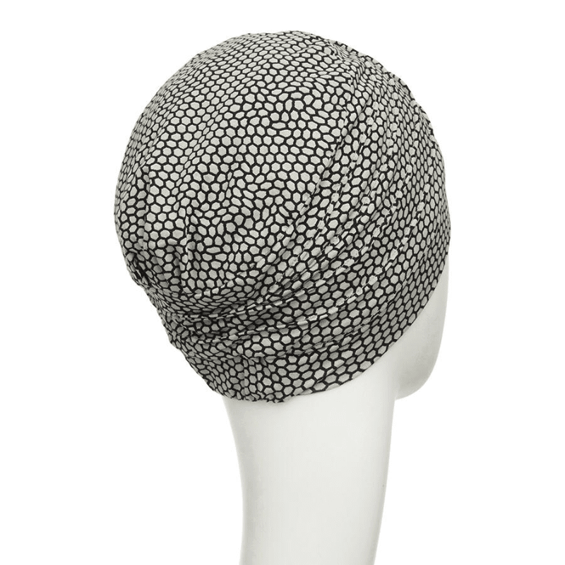 Blød og stilfuld hue med fine detaljer til dig, der har tyndt hår eller har mistet håret på grund af sygdom, medicin eller kemobehandling. Huen dækker hårgrænsen helt til og er ideel til hverdagsbrug - også hvis du er meget fysisk aktiv.