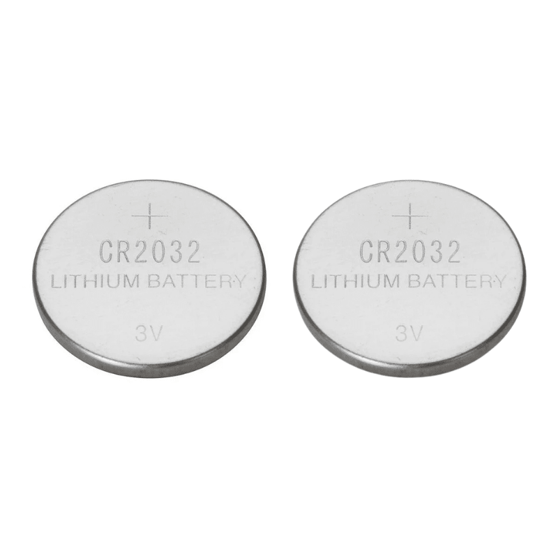 Pacote com 2 pilhas tipo botão CR2032 3V, com vida útil extra longa.