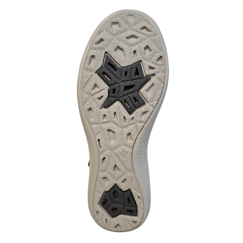 O sapato tem uma palmilha anatómica amovível com uma sola interior de cortiça natural macia, fornecendo excelente amortecimento e elevado conforto para uso prolongado. O enchimento suave em torno do antepé e do contraforte garante também um ajuste confortável sem pressão, e a sola exterior de borracha antiderrapante oferece uma boa e firme aderência.