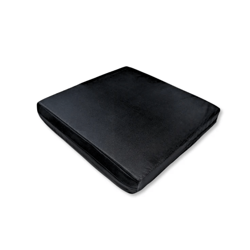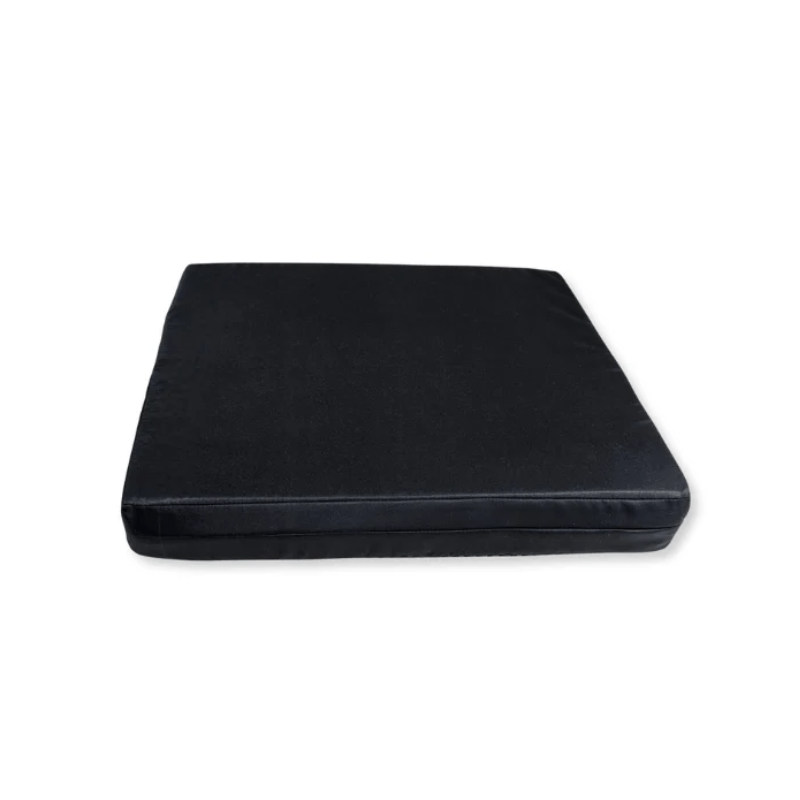 Na frente, a almofada tem uma ligeira curvatura que aumenta o conforto ao sentar, pois reduz a pressão sob as coxas. A almofada de assento é especialmente adequada para uso em cadeira de rodas ou em outras posições prolongadas sentadas.